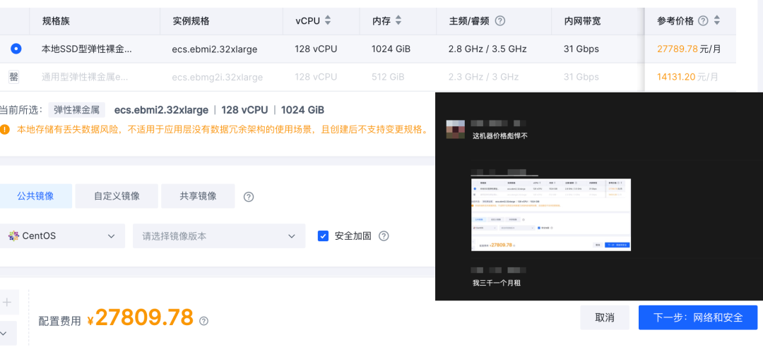 | Cost | 14.5 RMB/TB·month (5-year amortization / 3.2T MLC) 5-year warranty, ¥3000 retail | 3200 RMB/TB·month (Original price 6400 RMB, monthly package 4000 RMB) 50% discount for 3-year upfront payment | 1900 RMB/TB·month Best discount for the largest specification 65536GB 256K IOPS |