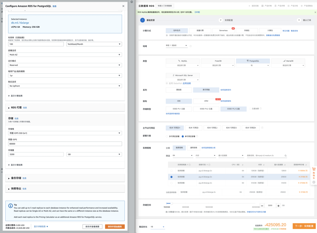 | 阿里云 RDS PG 4x内存(独占) | 320 |