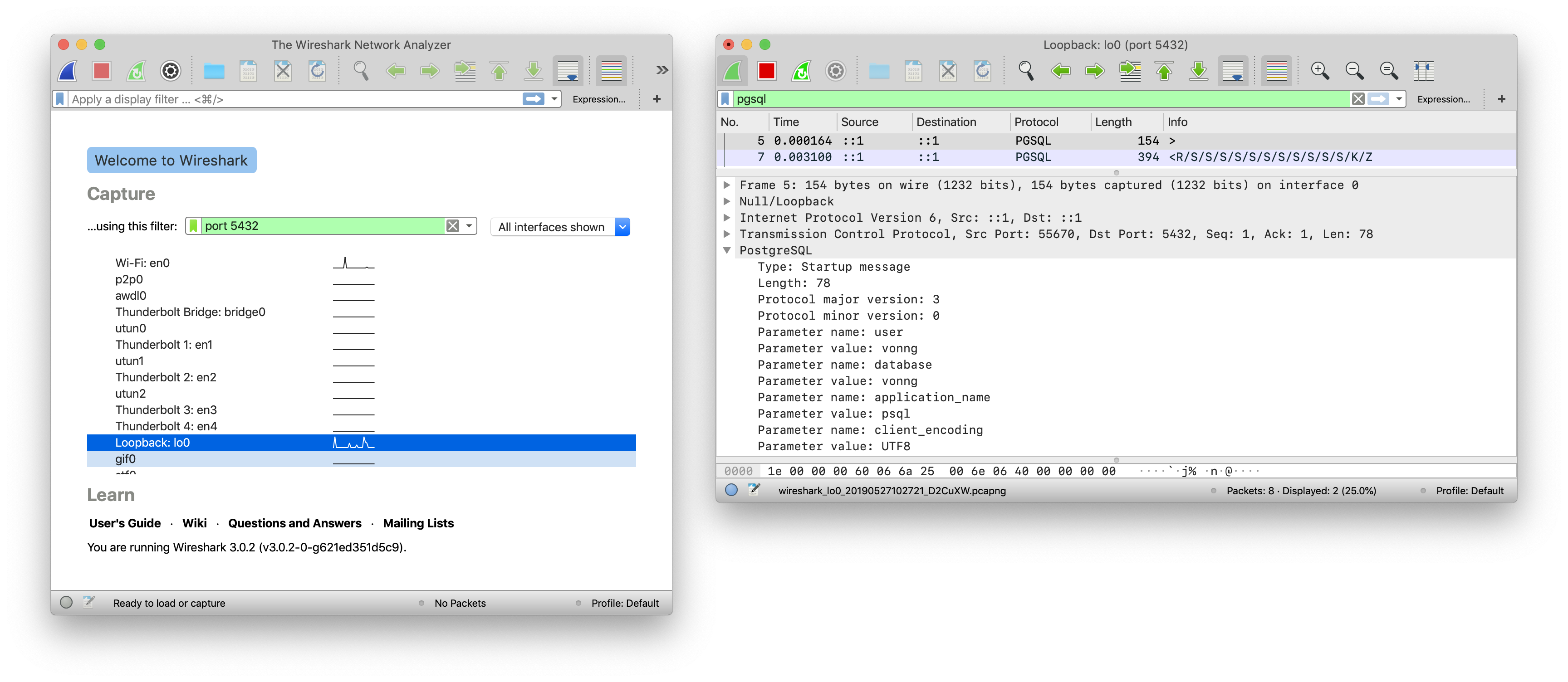 这里简单介绍使用Wireshark抓包分析PostgreSQL协议的方法。