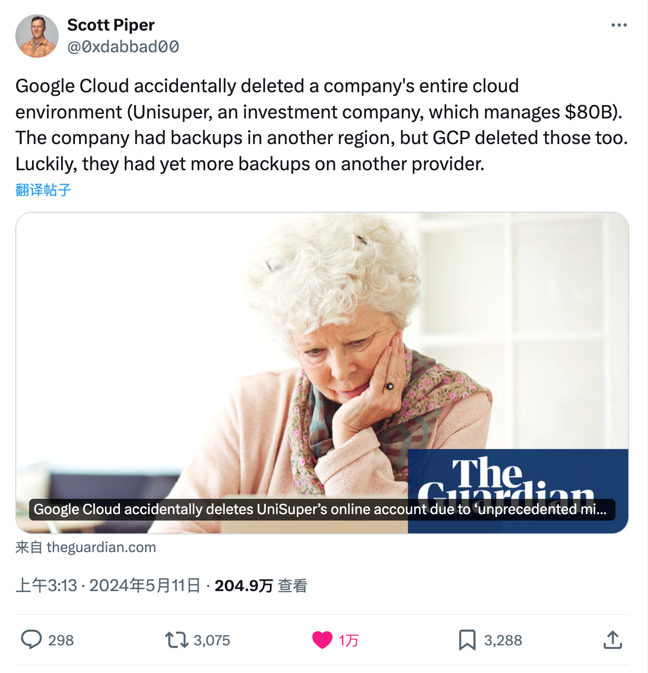 - 删库:Google云爆破了大基金的整个云账户