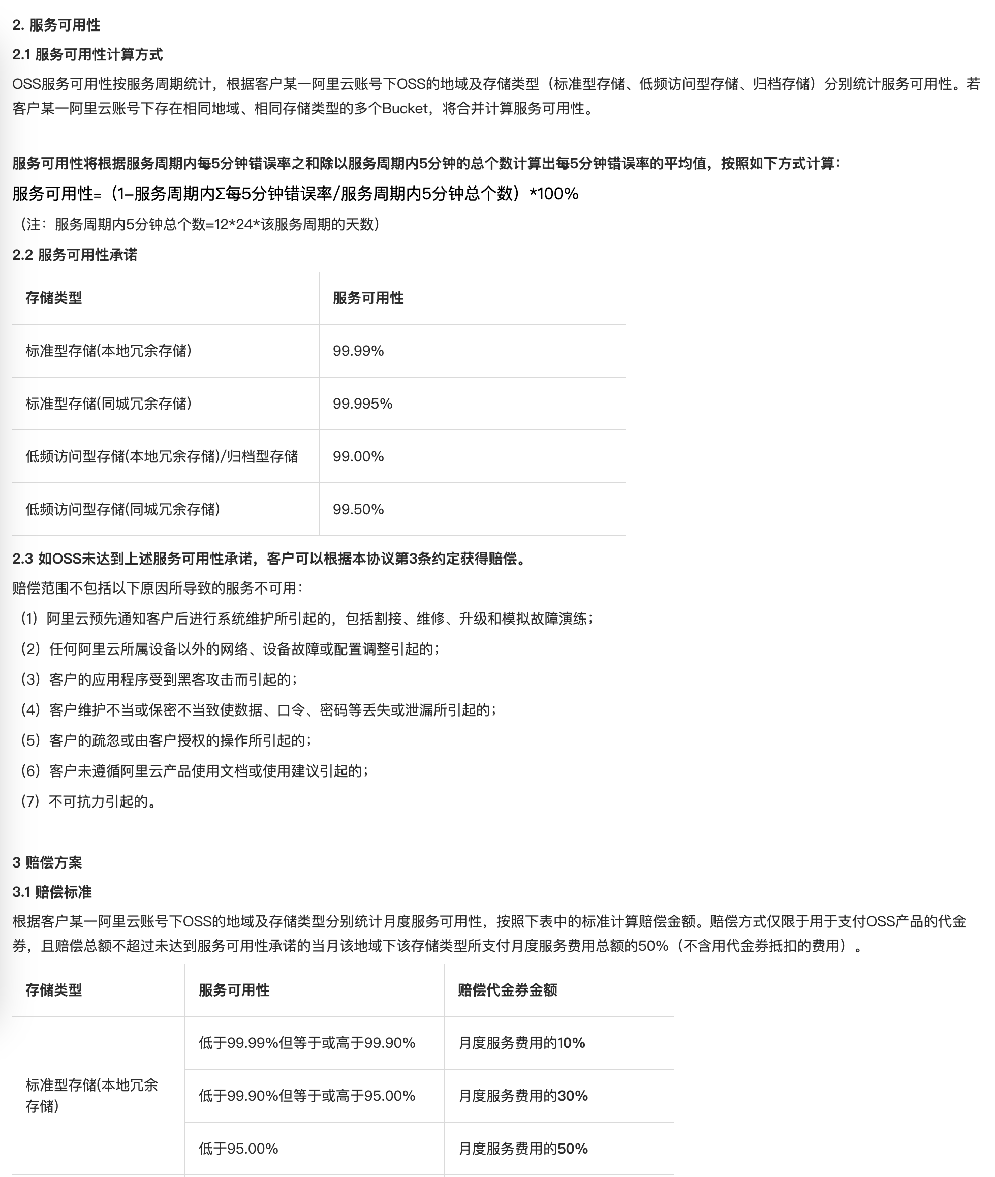 技术上的影响是一方面,更重要的是业务影响。根据阿里云的 服务等级协议(SLA),3个半小时的故障使得当月各服务可用性指标降至 99.5%。落入绝大多数服务赔偿标准的中间档位上,也就是赔偿用户月度服务费用 25% ~ 30% 的代金券。特殊的是这一次故障的区域范围和服务范围是全部!