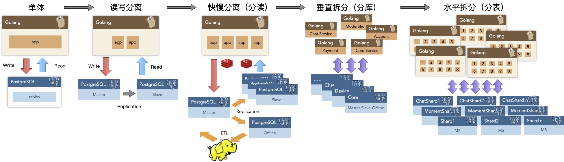 以探探为例,在250WTPS与200TB数据的量级下,单一PostgreSQL选型依然能稳如狗地支撑业务。能在很可观的规模内做到一专多长,除了本职的OLTP,Pg还在相当长的时间里兼任了缓存,OLAP,批处理,甚至消息队列的角色。当然神龟虽寿,犹有竟时。最终这些兼职功能还是要逐渐分拆出去由专用组件负责,但那已经是近千万日活时的事了。