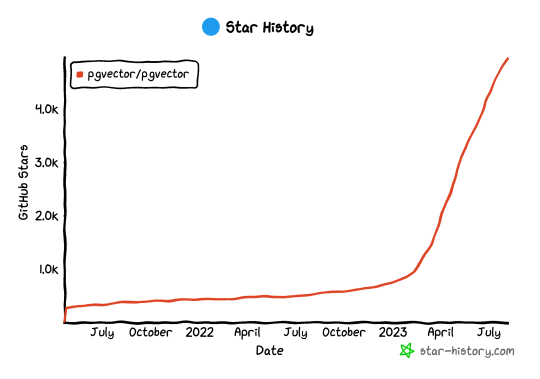 pgvector 的 Github Star 增长在2023年4月出现加速
